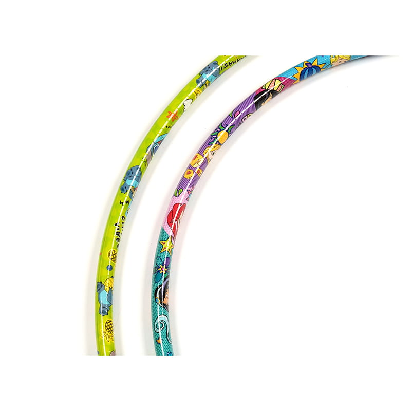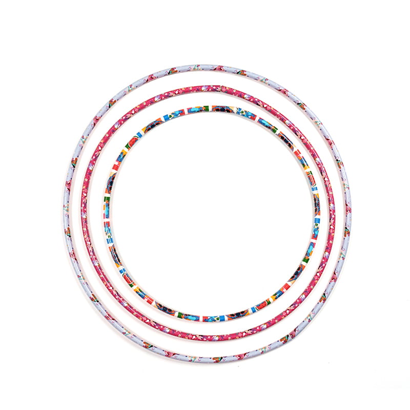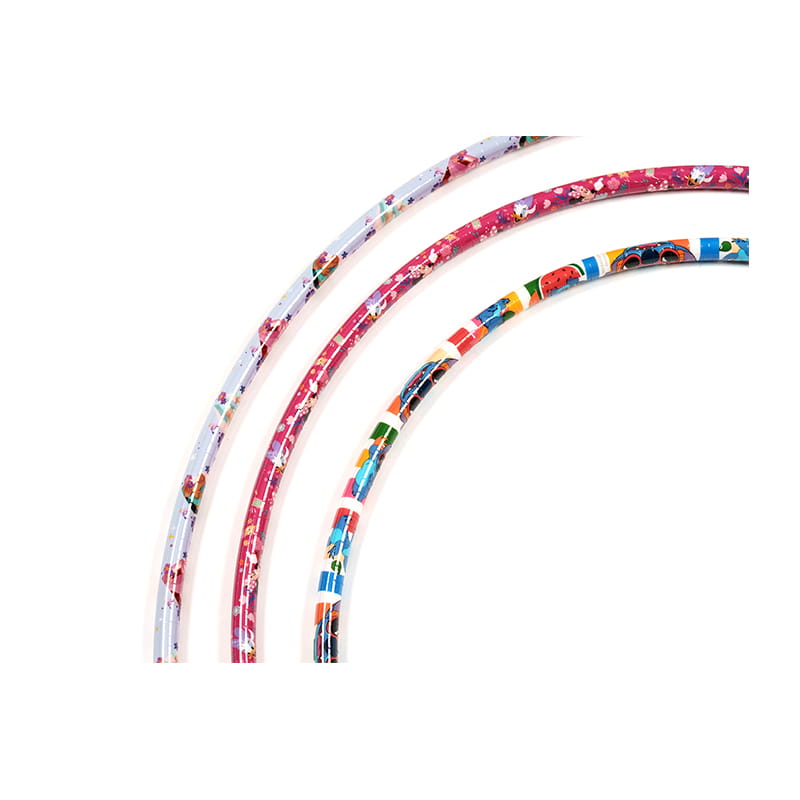 Farebná nálepka tejto detskej nálepky Hula Hoop je vyrobená z vybraných PE rúrky, ktoré sú bezpečné, šetrné k životnému prostrediu a robustné. Jeho povrch je vkladaný farebným tlačovým filmom, s rôznymi vzormi a jasnými farbami, vrátane žltej farby s modrou, zelenou a červenou farbou a fialovou farbou s farebnými vzormi, ktoré sú módne a zaujímavé. Táto obruč Hula má nielen krásny tvar, ale tiež ukazuje brilantné vizuálne efekty pri rotácii, stimulovaní záujmu detí o šport, aby mohli cvičiť svoje telá a zároveň si užívať dvojitú zábavu z videnia a športu.
