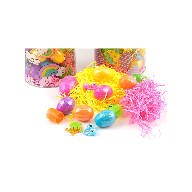 Veľkonočné prekvapenie darčekové balenie farebné vajcia, vybraný materiál PP šetrný k životnému prostrediu, ktorý je rafinovaný, bezpečný a netoxický, zdravý a ekologický. Každé vajce má vo vnútri vynikajúci malý darček, ktorý vám prináša neočakávané prekvapenie. Vajcia farebné, vrátane ružovej, žltej, modrej a zelenej a ďalšie možnosti, každá s jedinečným dizajnom, plná zábavy. Spárujte ich s plastovým vedrom zdobeným poníkmi a hviezdami, aby ste mohli sviatočný vzhľad. Či už ide o darček alebo pre vaše vlastné použitie, toto Veľkonočné prekvapenie vajíčok dodá vašej Veľkej noci špeciálny nádych radosti.